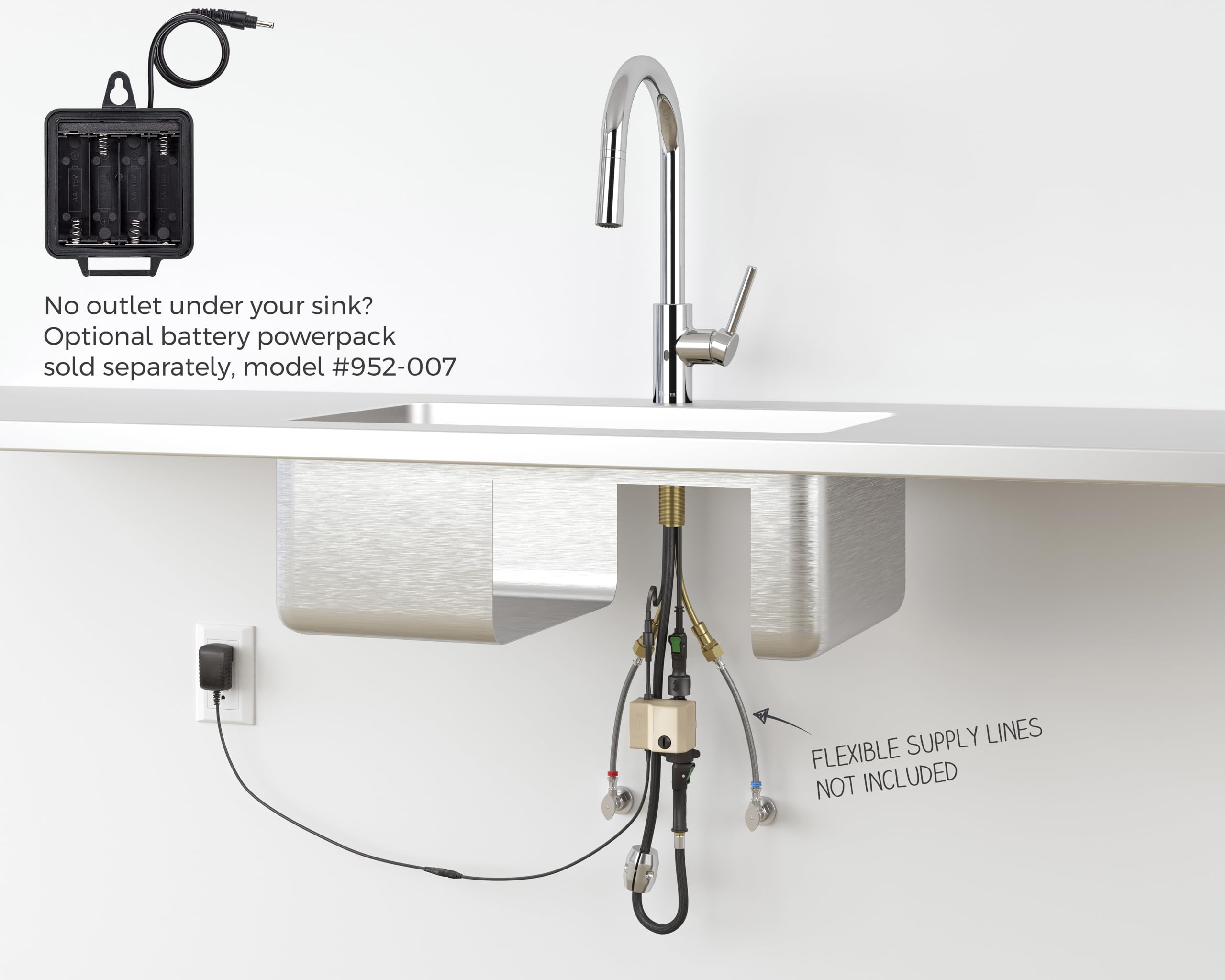 - Motion activated faucet comes with plug-in cord; Battery pack also available to purchase separately, #952-007, to power electronic function up to 2 years