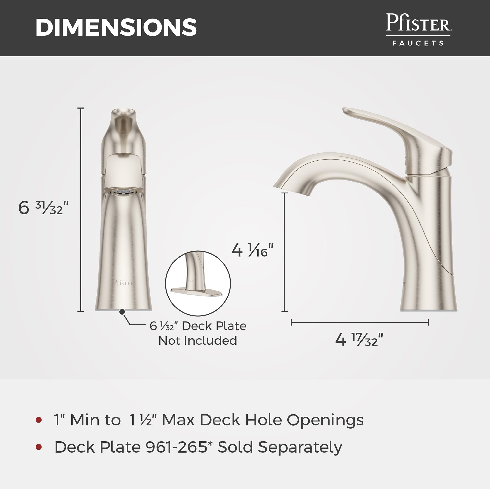 - LIMITED LIFETIME WARRANTY – Limited Lifetime Warranty covers finish and function for as long as you own your home, backed by Pfister's trusted reputation since 1910 as a leader in bathroom faucets and plumbing products worldwide